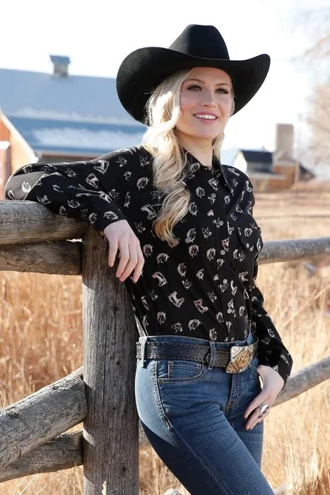 ‘Cruel’ Women’s Horse Print Rayon Long Sleeve – Black
